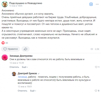 Очень приятные девушки работают на бирже труда. Улыбчивые, добродушные, участливые. Выходишь от них будто нектара испил, душа поет, жить хочется. И пошутят и помогут и посоветуют. От них теплом и душевностью веет, уютом каким-то.